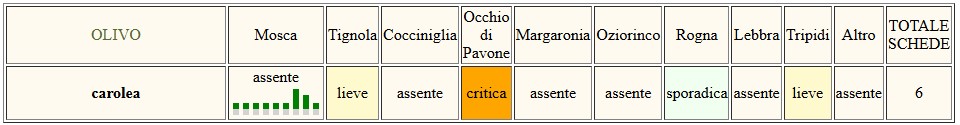 Presenza anche critica di Occhio di pavone, gli appezzamenti in quota non presentano problemi.