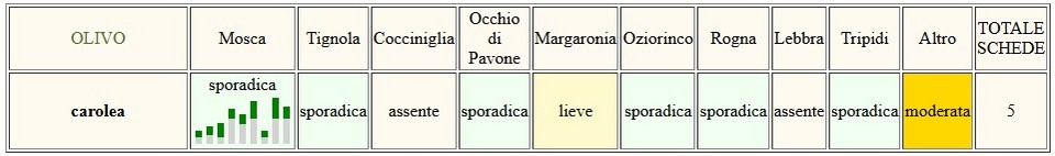 Sostanzialmente stabile il numero di catture di mosca e di larve vitali, anche se la presenza resta sporadica.
