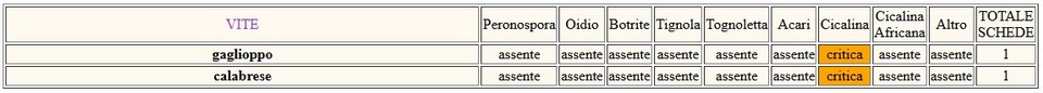 Cicalina della vite. Negli ultimi giorni la presenza e l’attività del parassita risultano intensificate nai diversi siti in osservazione. Si evidenziano i tipici sintomi a carico della vegetazione e si rilevano maggiori catture del parassita sulle trappole adesive. Si consiglia di monitorare attentamente l’evoluzione dell’attacco e intervenire con i mezzi di controllo disponibili al superamento delle soglie di danno.